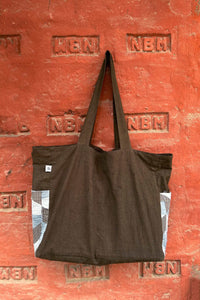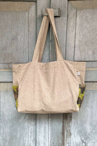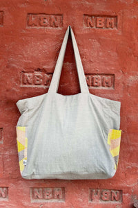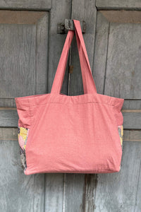 Unisex Cotton Dusty pink Tote Bag has multi-colour Chindi Patch Pocket at both sides.