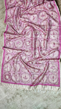 Pure handwoven desi wild silk dupatta hand painted in traditional madhubani artwork.