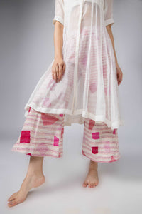 Women upcycled flared leg trouser in handwoven cotton is hand embroidered in sujani with multi colour threads and has two side pockets.